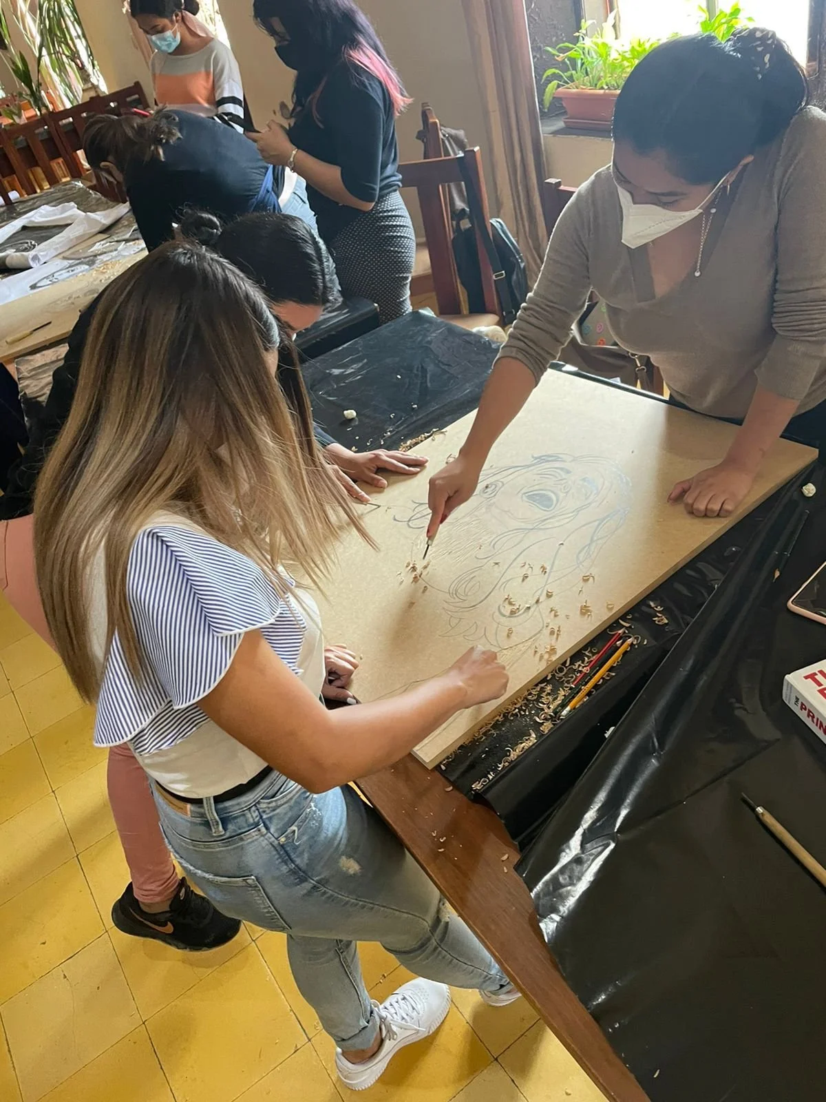 The girls were taught the printmaking technique of woodcut. While the participants carved their blocks, they talked and shared their ideas, curiosities, insecurities, and fears. The images they carved were the faces of women experiencing orgasms, addressing the sexual right of pleasure. These images were taken from "The O Project" by Marcos Alberti.